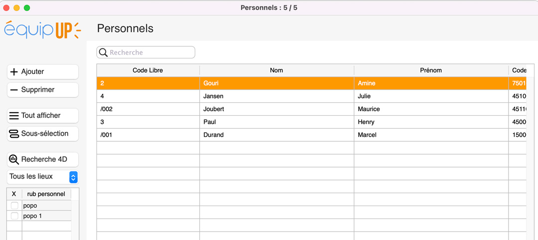équipUP, développé sur 4D, est très exactement le module gestion du personnel de Vision+, testé par ses utilisateurs depuis mai 2025 : c’est rassurant. Il est totalement autonome avec un nouveau design plus jeune. équipUP ne concerne donc pas les utilisateurs de Vision quelle que soit leur version.