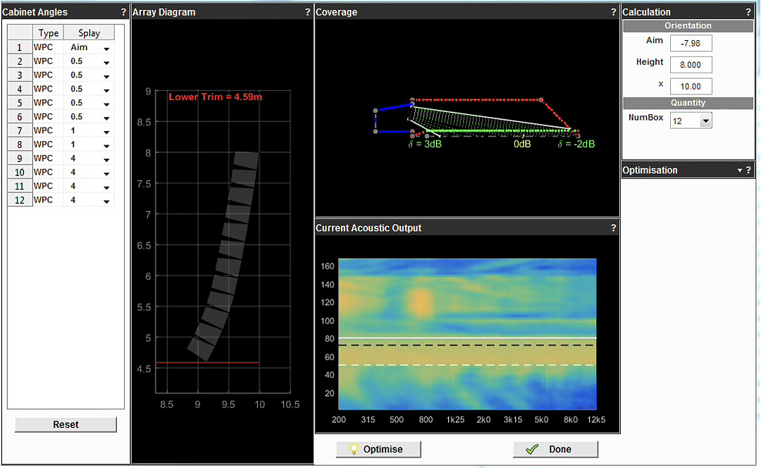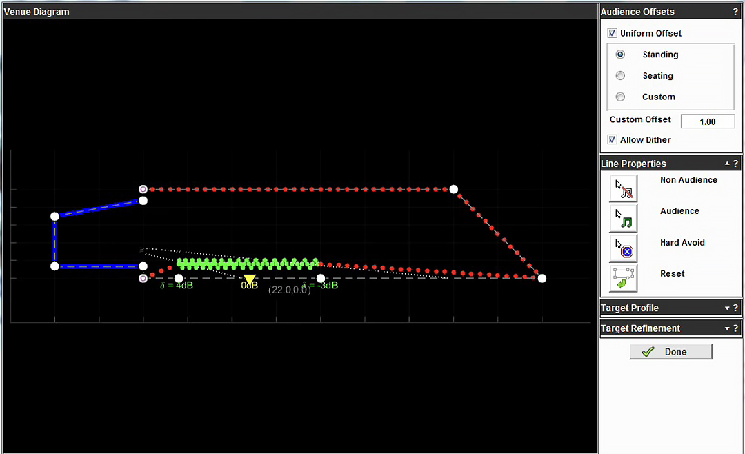 Manu Borie : Indispensable. Je fais entièrement confiance au logiciel. En plus avec ce système qui est totalement maîtrisé par le DSP, il ne serait pas raisonnable de ne pas suivre la prédiction. C’est un tout. Pour commencer, tu lui donnes le nombre d’enceintes et leur références ainsi que la couverture précise de la zone de diffusion et les zones d’exclusion.