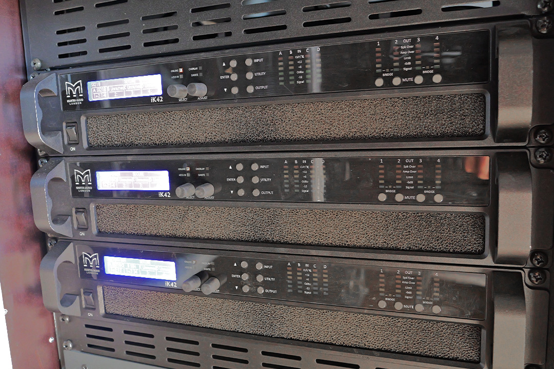 Stéphane Torlois : Oui, des iKON iK 42. Nous utilisons exclusivement ce modèle pour des questions d’homogénéité de parc. Nous en avons intégré une quinzaine en rack à des formats variables. Nous n’utilisons pas les formats Martin Audio, mais pour une question de polyvalence, nous avons créé nos propres racks et plaques de connexion qui sont compatibles.