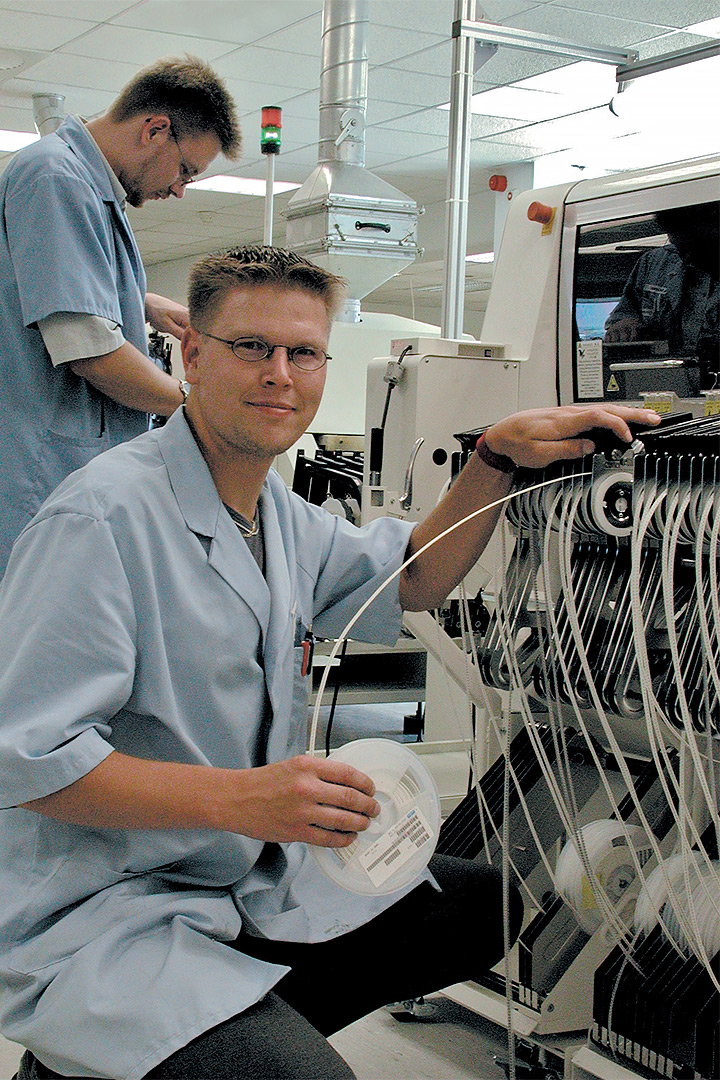 Ces édifices dont les fonctions ont changé avec le temps, gardent leur style d’époque. Certains sont devenus la R&D (verboten !), d’autres des lignes d’assemblages et les tout derniers hébergent la zone CMS avec ses torons de microcomposants, les lignes de machines implantant ces derniers et enfin les vagues et autres refusions. Inutile de préciser les rythmes de travail qui, succès de certains produits récents oblige, sont très élevés. On n’en dira pas plus.