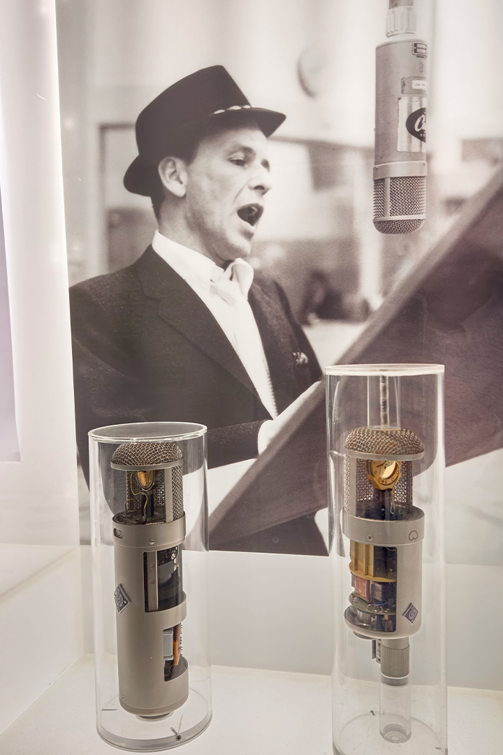 Qui dit siège social dit aussi armoires vitrées pleines d’objets tous plus vintage les uns que les autres et pour certains, le mot n’est pas galvaudé, iconiques, à la fois chez Sennheiser comme chez Neumann. On vous propose donc en quelques images, un tour de ce que l’Allemagne a produit de plus sonore et fidèle, révolutionnaire et indémodable.