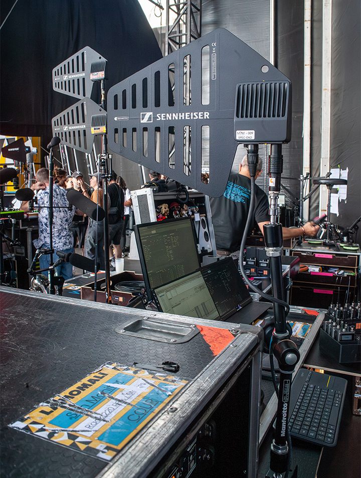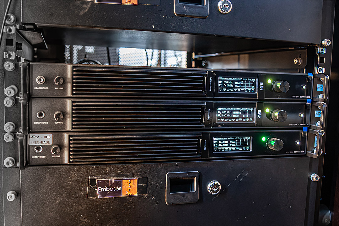 Notre système Spectera est aussi présent au plateau de la scène principale avec six boîtiers et deux antennes. Une interface Merging Anubis permet son câblage en analogique sur le PFL des régies retour qui passent sur le festival, pour que chaque ingénieur qui ne dispose pas de MADI ou de Dante, puisse facilement évaluer le système. L’utilisation de notre matériel se fait toujours avec la validation de la direction technique, en bonne intelligence.