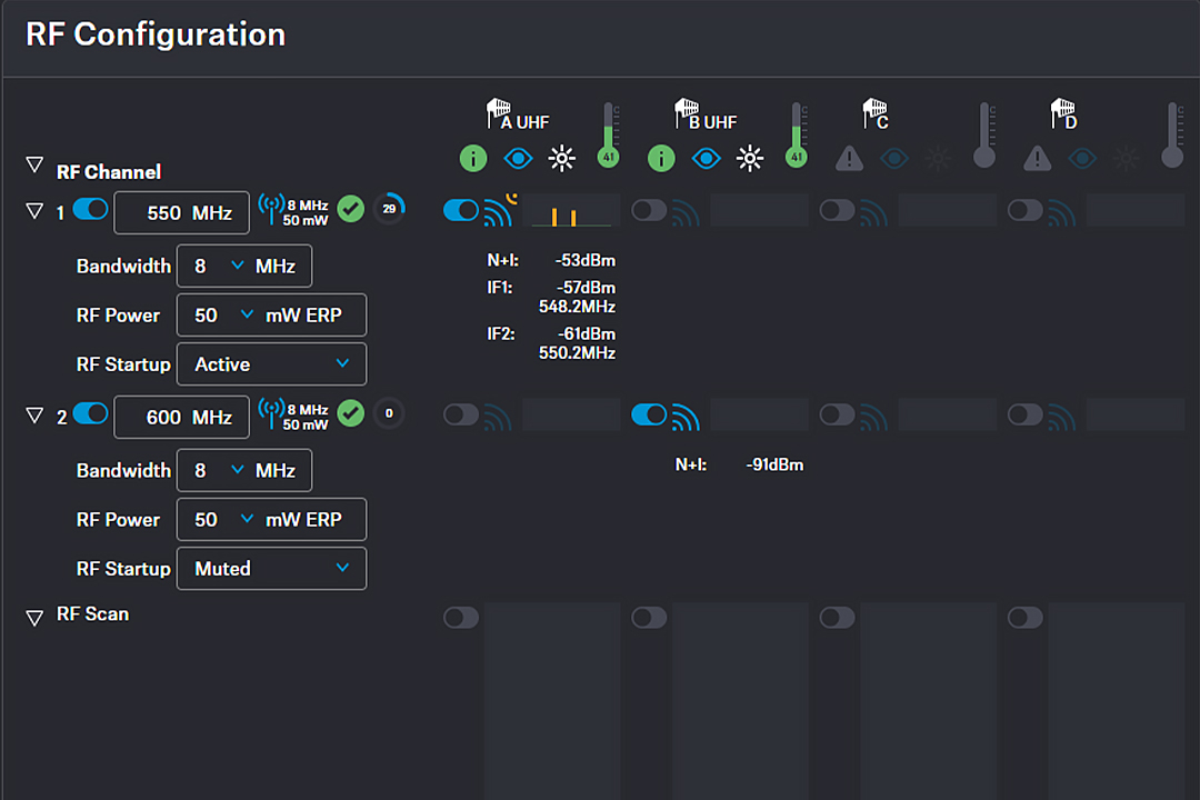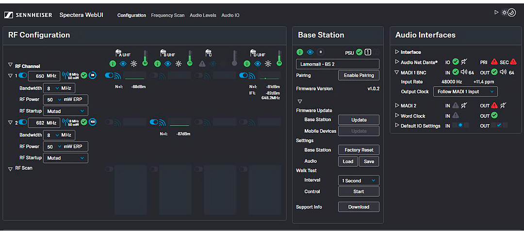 Charly Fourcade : Beaucoup d’autres, par exemple le mode Ingénieur (Engineer mode) qui permet depuis un pack d’écouter au choix un canal audio parmi ceux présents sur le canal RF. Un pack configuré comme cela permettrait par exemple de directement recevoir et convertir en analogique l’audio d’une source comme une guitare ou une basse afin d’entrer dans un pedal board. Il y a aussi le Push To Talk, la possibilité de nommer les antennes, d’intégrer le Walktest par exemple à Linkdesk.