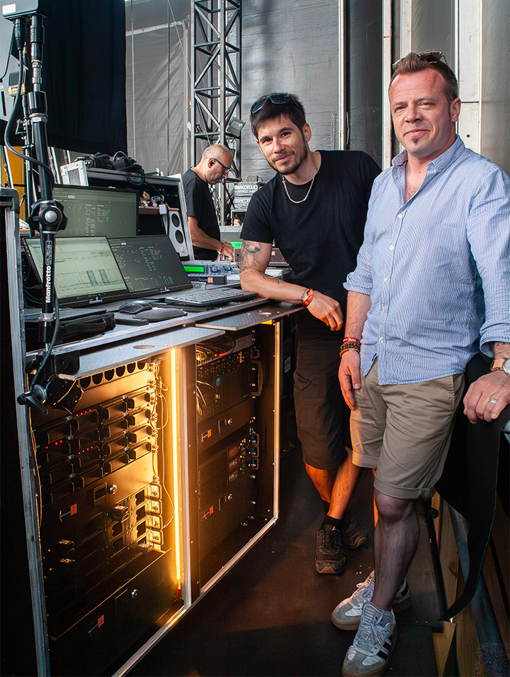 Nicolas D’Amato : J’ai la chance de travailler avec Hugo qui maîtrise parfaitement le système Spectera et son logiciel. Il garde un œil en permanence sur les écrans de contrôle et peut intervenir en quelques secondes sur n’importe quelle machine. Ça me soulage de cette partie HF pendant le show.