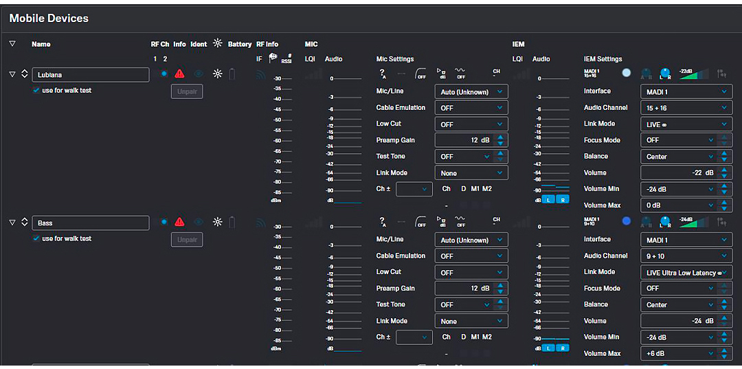 Nicolas D’Amato : Chaque qualité et mode de transmission sont gérés de manière complètement indépendante. On peut affecter des paramètres adéquats pour chaque liaison IEM, y compris leur mode de transmission, en fonction de leur utilisation.