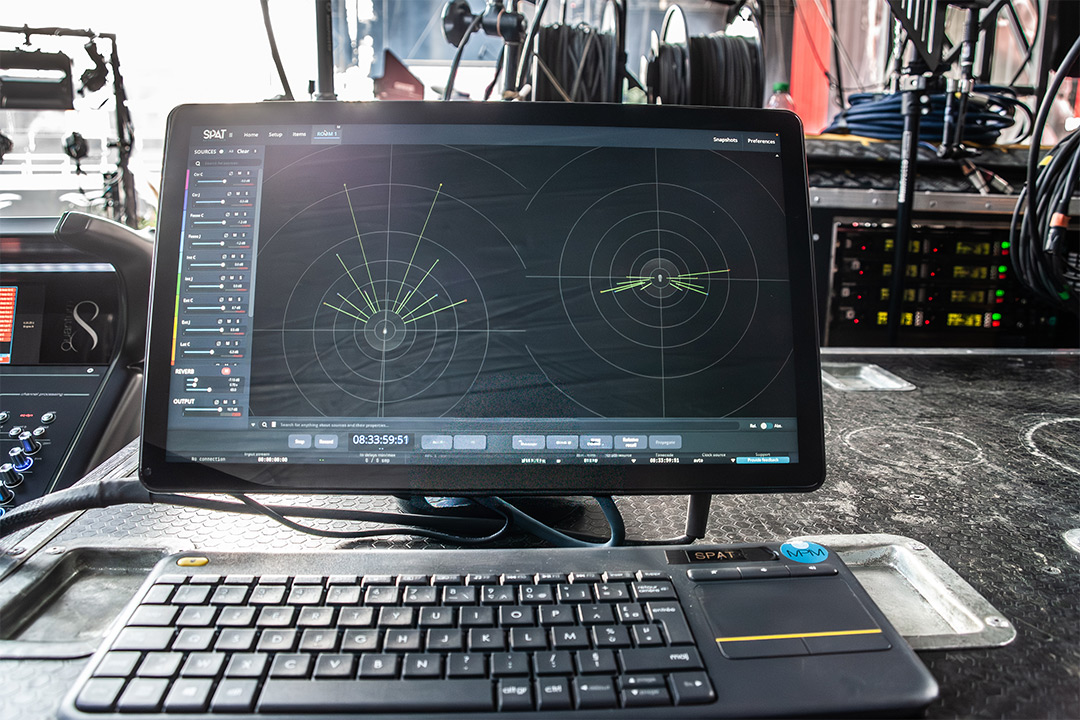 Après cet échange et cet avant-goût des nouvelles fonctionnalités du système Spectera, il est temps de se rendre à la régie retour de Nico d’Amato et de Hugo Pacé, qui officie sur la tournée de Lamomali, et que nous retrouvons ici aux Francofolies pour le concert de clôture, retransmis sur France Télévision.