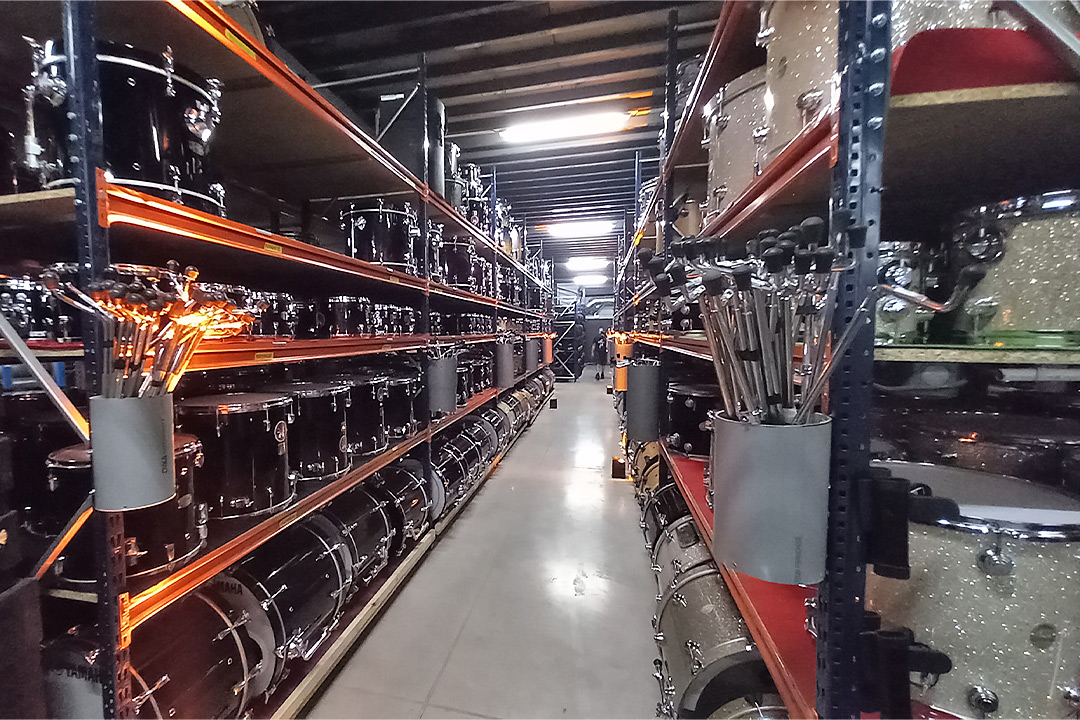 Le pôle Backline gère l’un des plus grands parcs d’instruments en Europe (360 guitares et basses), incluant aussi des instruments rares et anciens qui nécessitent des conditions de stockage exigeantes en termes d’humidité et de température. Sa préparation en logistique, rendue complexe par de nombreuses variations de modèles (couleur, profondeur, année) est critique et doit être vérifiée via un système de référence par QR codes pour éviter toute erreur de livraison.