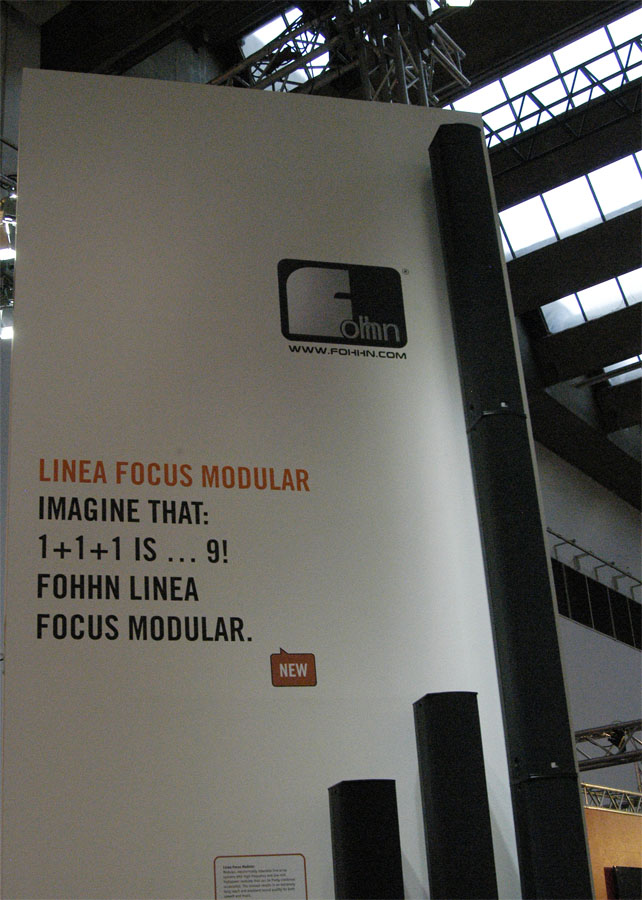 Les Linea Focus Modular sont la dernière contribution de Fohhn à la série de colonnes à directivité contrôlée Linea Focus. Ces colonnes discrètes permettent un contrôle en temps réel de la directivité verticale du faisceau (jusqu’à 90° par pas de 1°), et de l’ inclinaison virtuelle (tilt de +/- 40°). La gamme comprend quatre éléments : FM-100 (huit tweeters 1’’) et 110 (16 tweeters 1’’) pour les aigus et 400 et 410 (12 x 6,5’’ longue excursion) pour le grave/ médium. Le FM-410 est obligatoire dans une configuration car c’est la colonne qui embarque le traitement et l’amplification. Le système se contrôle via le réseau Fohhn net et le logiciel Fohhn Audio V3. Chaque transducteur d’une colonne est contrôlé individuellement avec un canal DSP et son module d’amplification. On peut ainsi constituer des lignes modulaires de hauteur variable facilement intégrables dans le décor, et pouvant assurer des portées jusqu’à une centaine de mètres.