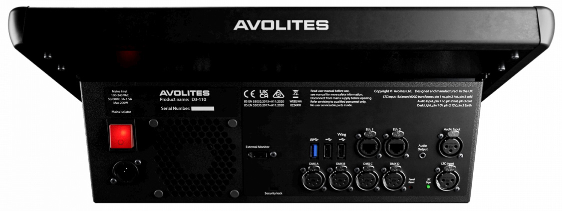 La console Avolites D3-110 de la nouvelle gamme “D” a bien des atouts. Dans un format compact, elle utilise 10 faders (60 mm), 12 exécuteurs, un écran tactile, 3 roues codeuses et gère 24 univers DMX avec 4 sorties DMX physiques et 2 ports réseau.