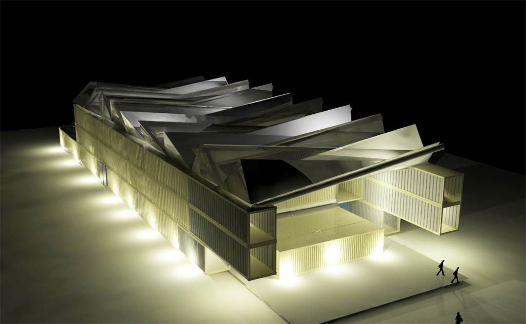 projet de salle de spectacle composée de containersStimulante simulation d’une salle destockée