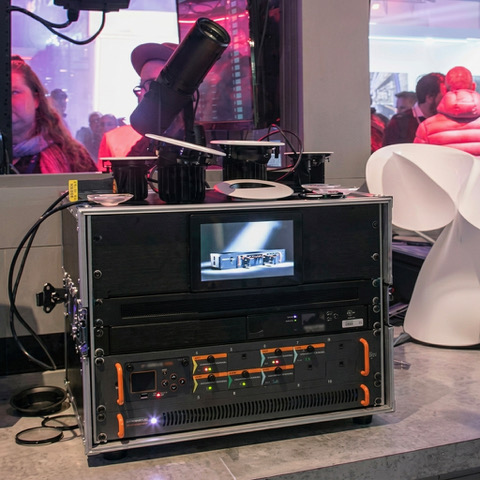 Le rack de drivers de LEDs F-Drive RX posé sur son alimentation.