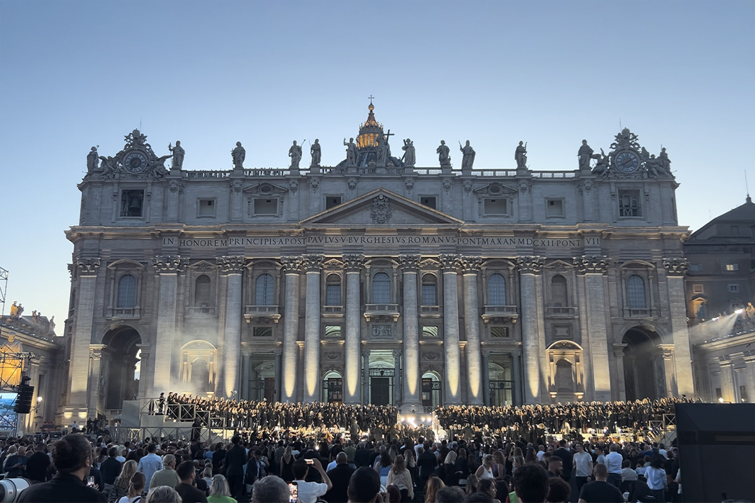 Le 13 septembre 2025, la Cité du Vatican à Rome a accueilli Grace for the World, le tout premier concert organisé sur la place Saint-Pierre, qui aurait attiré plus de 250 000 personnes sur cette place vénérable.