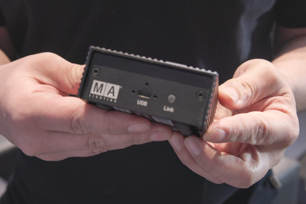 L’outil est plug-and-play et ne nécessite ni configuration ni paramétrage réseau. Deux sorties DMX permettent de se connecter aux projecteurs du kit et un rail situé à l’arrière permet de l’installer sur n’importe quel rig d’installation. Sur cette lancée, MA Lighting ajoute un deuxième produit, la onPC DMX-key starter.