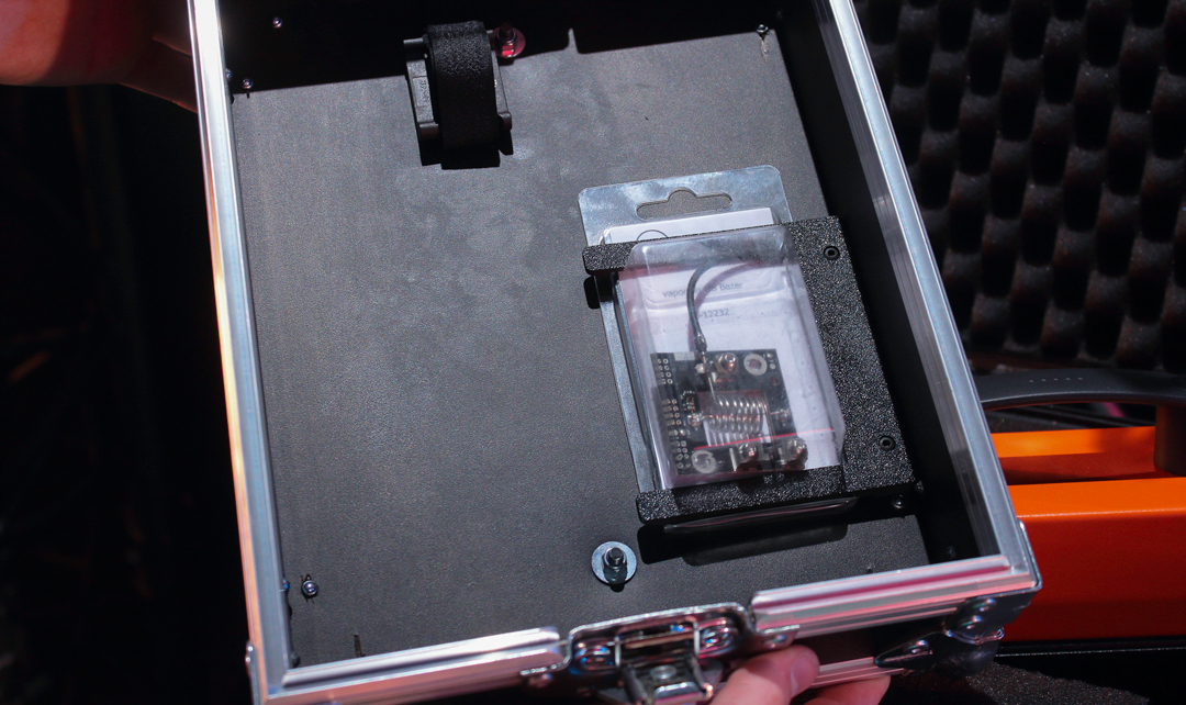 Petite “feature” qui nous a beaucoup plu, le petit support de rangement interne au capot du flight-case, qui abrite un corps de chauffe de rechange fourni d’origine !