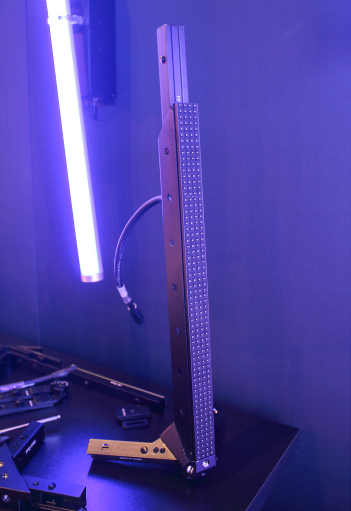 Penchons-nous sur les détails techniques. Les Pulse Q50 et Q100 mesurent respectivement 50 cm et 1 m de long. Leur carcasse, entièrement en aluminium, leur confère solidité et légèreté. Seulement 750 g sur la balance pour le modèle Q50, le Q100 pèse 1,3 kg. Des essais ont démontré la robustesse des assemblages avec jusqu’à 40 barres suspendues sur un seul point ! Du côté de la vidéo, nous retrouvons deux matrices de led smd Blackled Nationstar au format 2727 de résolutions respectives 4×64 et 4×128 pixels pour un pitch de 7,8 mm et une luminosité de 7 500 nits.