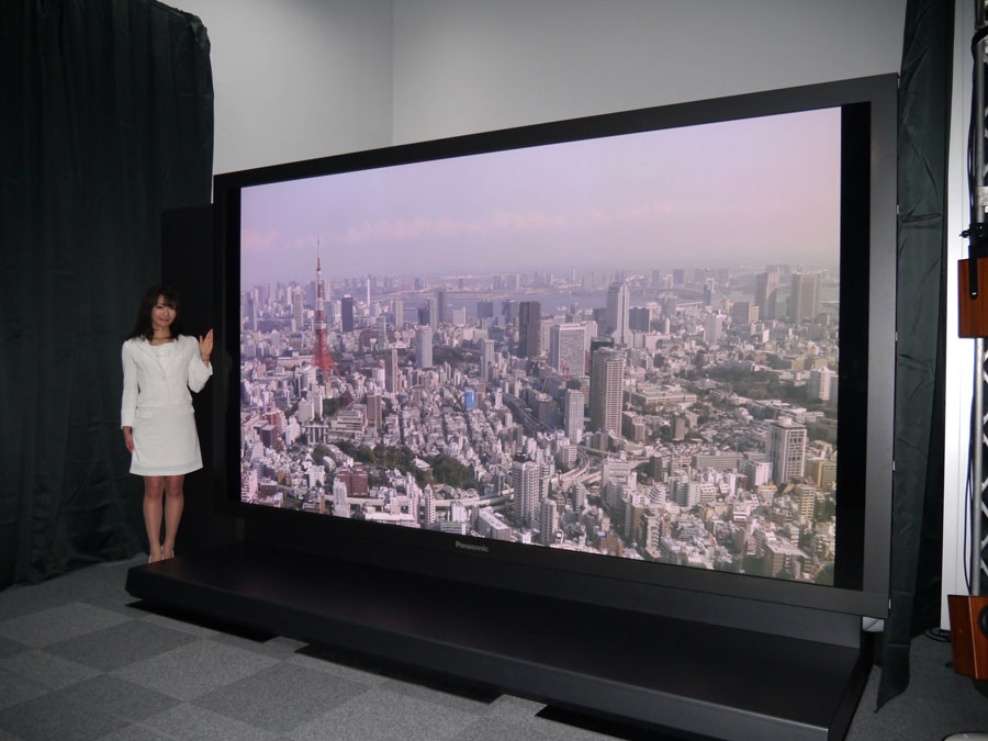 Les différents constructeurs travaillent sur cette technologie, et pour cela il est doté d’une résolution 4K2K permettant un affichage HD des images 3D. Selon Panasonic, un système de correction du parallaxe permet de réduire de moitié les images fantômes et le phénomène de moiré inhérents à l’image tridimensionnelle sans lunettes. Ce grand écran est destiné au marché de l’affichage numérique 3D utilisé par les professionnels de la présentation, aucun prix n’est encore fixé. Panasonic a également présenté son système interactif 3D Multi-view, le spectateur peut contrôler l’image d’un objet via un écran tactile et le voir en trois dimensions selon la taille et la profondeur qu’il souhaite. Le constructeur japonais s’est aussi associé à la chaîne NHK pour concevoir la prochaine génération d’écrans plasma capables d’afficher des images en ultra haute définition (Super Hi-Vision) avec un prototype de 145 pouces.