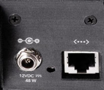 Le panneau arrière d’interconnexion avec à gauche la sortie pour accordage de l’instrument jamais « mutée » et à droite l’embase d’alimentation (lorsque le 48 V fantôme n’est pas utilisé).