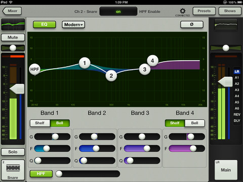 Cette sortie reste toujours opérationnelle même lorsque les envois à l’ampli et à la façade sont « mutés ». On évite de la sorte les bruits indésirables envoyés dans le système de diffusion et dans les retours lorsque le musicien change d’instrument ou l’accorde.