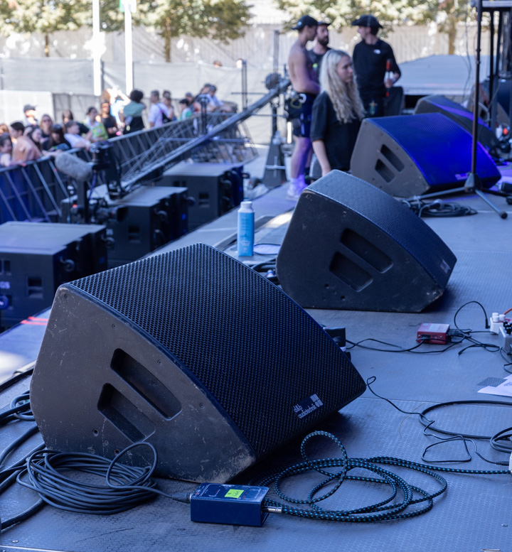Fredéric explique : « Je suis permanent chez B-Live et je gère ce dossier avec Christophe Menanteau, qui est le chargé d’affaires ». On essaie de faire évoluer les scènes avec l’équipe structure pour les optimiser avec différentes technologies et de nouveaux amplis. On a aussi revu les designs car depuis quelques années déjà, les subs sont en hauteur sur la Grande Seine ou sur « Bosquet » et on vient de faire évoluer l’implantation de la scène « Revolut » dans ce sens aussi.