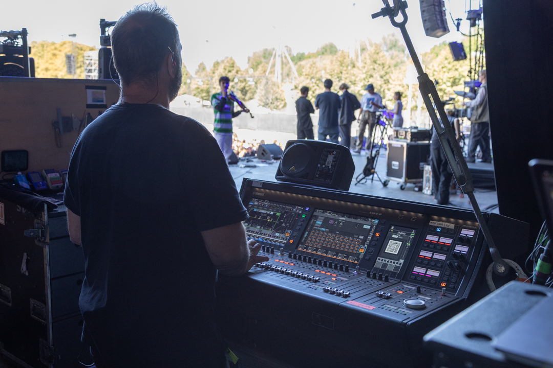 Fredéric Ciezki : En accueil on a choisi la Yamaha DM7 en 64. On la propose en façade et en retour. C’est une console couteau suisse que tout le monde connaît. Sur certains groupes, on renforce quand il y a besoin d’une DiGiCo. Ensuite c’est selon les demandes. Nous avons installé de la SSL sur une des scènes par exemple. On prend ces décisions en accord avec la production du festival et notre principal interlocuteur est Nicolas Champion qui nous donne le feu vert.