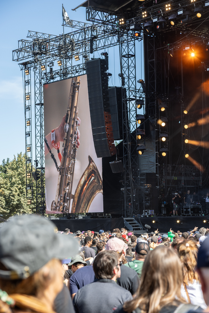 En plus d’être prestataire, B-Live a prévu l’implantation ainsi que la mise en place des systèmes de sonorisation. Le système de diffusion est principalement du d&b avec du L-Acoustics sur une des scènes. Ce choix de diffusion, historiquement mis en place par l’ancien prestataire de Rock en Seine, On Off, aujourd’hui intégré à B-Live, a été maintenu. On retrouve la série SL avec le KSL, le GSL et le SL Sub, ainsi qu’une scène équipée en série V.