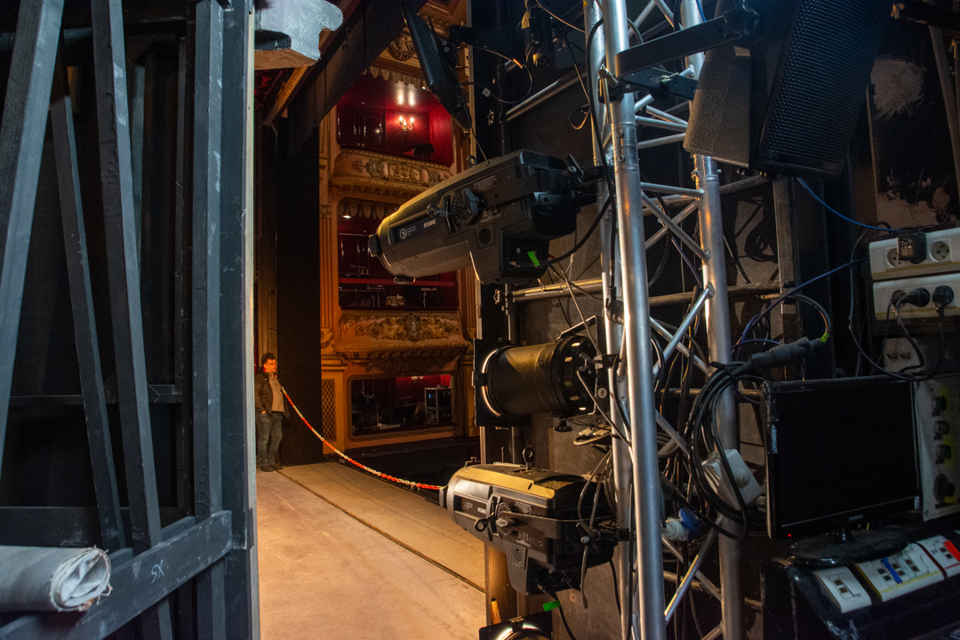 Julien Bodart : Il n’y a pas tellement d’éléments spécifiques car les treuils sont à l’arrière de la scène. On a deux paires de treuils à cours et jardin qui amènent deux chemins de câbles et qui partent ensuite de chaque côté de la scène. On distribue aussi sur une première poulie qui est en devant de scène et ça continue tout droit jusqu’aux gradins.